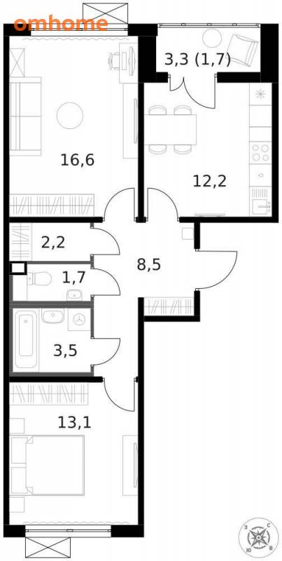 Продажа 2-комнатной квартиры 59,4 м²
