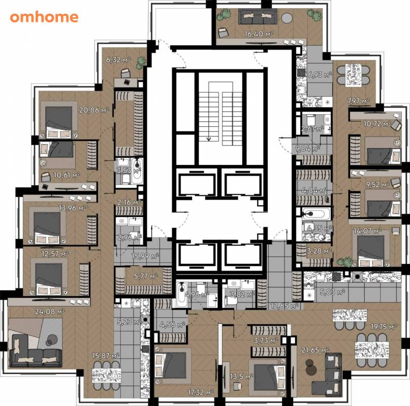 Квартиры с просторными террасами – выход на свежий воздух прямо из дома, гармония природы и городской роскоши.