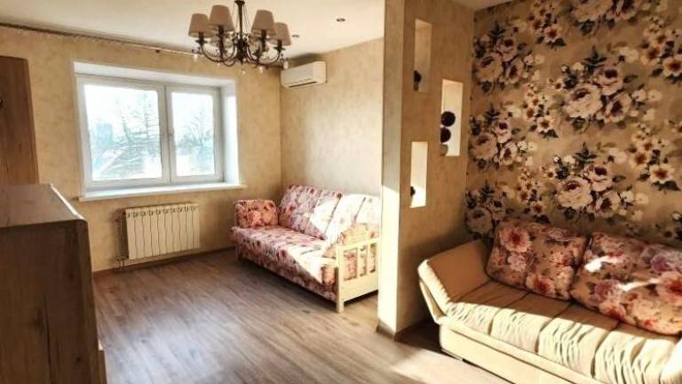 Сдается студия посуточно, площадью 15 м². Можно заселиться с детьми. Жилая площадь 11 кв.м, кухня 3 кв.м. В квартире четыре спальных места, ремонт по...